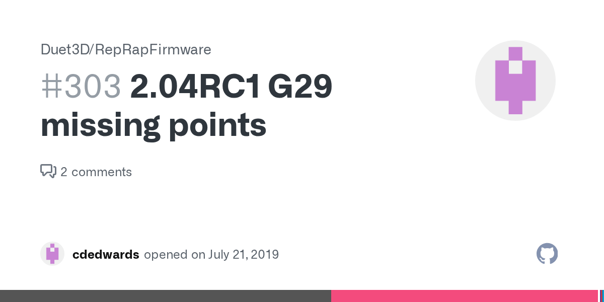 Reprapfirmware supports two different types of z probing: Analog input or pwm output; Could this be a problem similar to that: Send command g30 to do a single z probe. On a delta printer it is used for auto calibration. Some probes may need specific capabilities e.g. Mar 01, 2020 · duet 3, rrf 3 rc2, core xy.